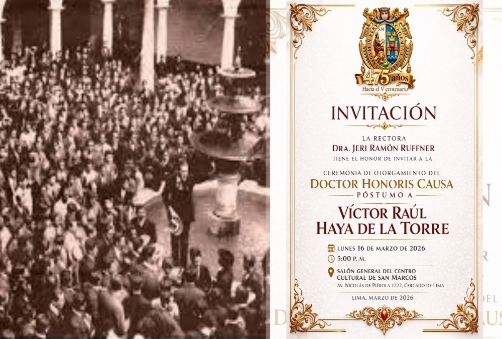 En ceremonia solemne que se llevará a cabo el día lunes 16 de marzo, a las 5 de la tarde, en el Salón General del Centro Cultural San Marcos, situado en el Parque Universitario, centro de Lima, la Dra. Jeri Ramón Ruffner, rectora de la también llamada «Decana de América», otorgará este grado honorífico a quien fuera estudiante sanmarquino y líder estudiantil.